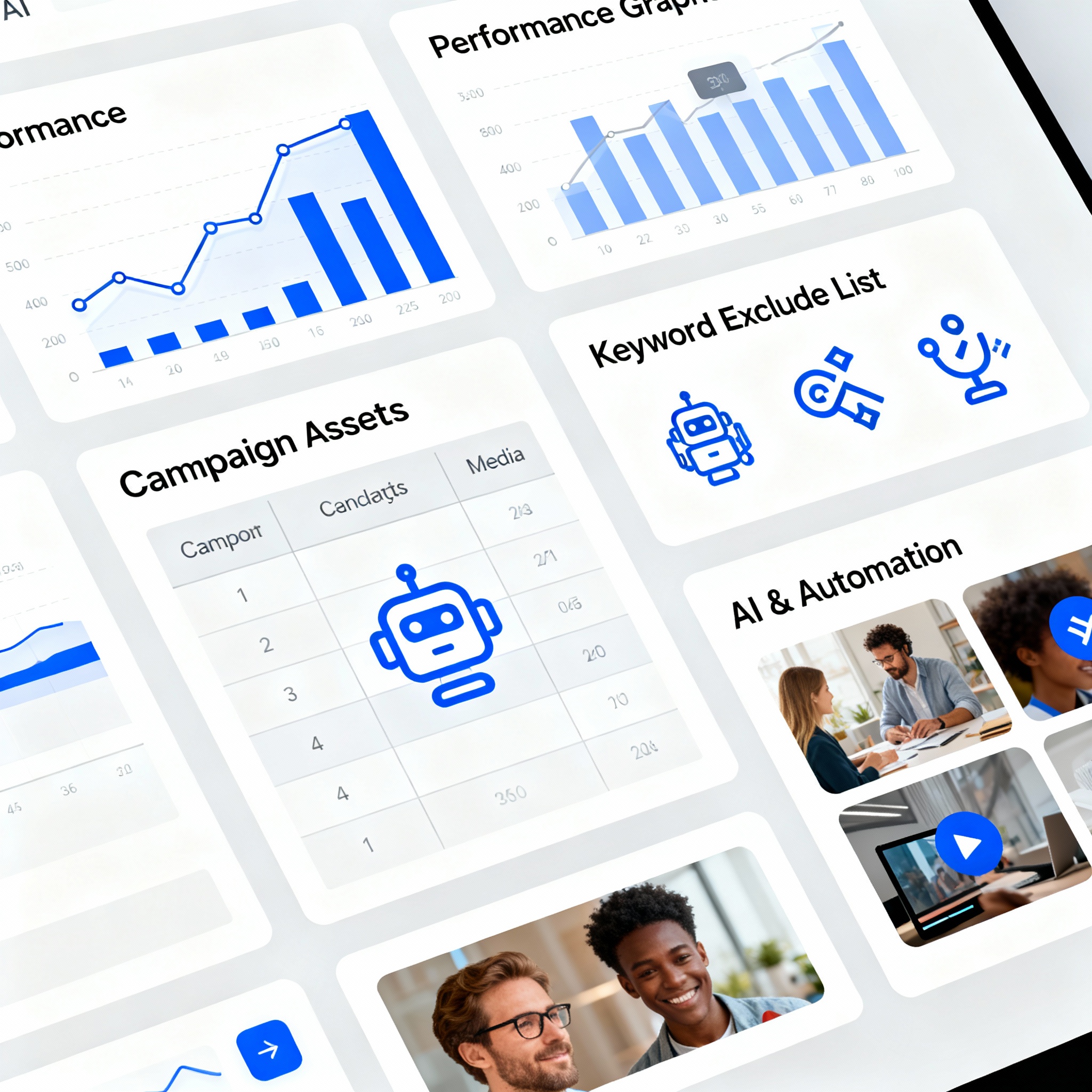 • Możliwe jest automatyczne sugerowanie fraz do wykluczenia, a AI podpowiada, gdzie „ucieka” budżet.